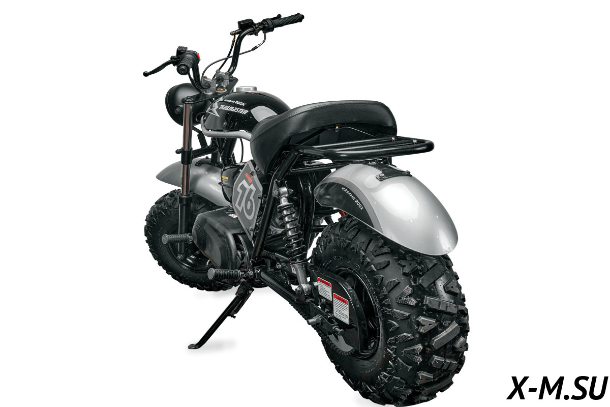 На мотоцикле установлены передние и задние гидравлические тормоза для более эффективного торможения. А широкие 8 дюймовые колеса от квадроцикла позволяют уверенно двигаться по пересеченной местности. Высота по седлу всего 720мм позволит уверенно себя чувствовать даже водителю с не большим ростов.