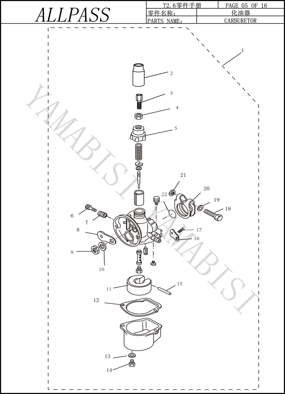 Лодочный мотор Yamabisi - T2.6 Карбюратор